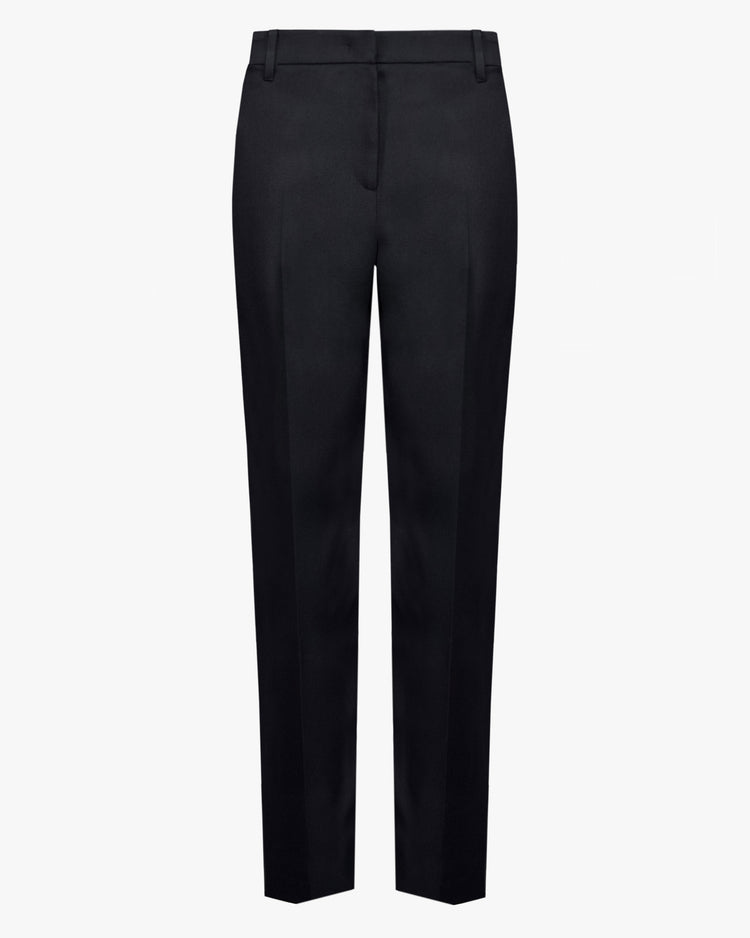 High waisted pant, cut from a wool-blend twill suiting. A slim tapered leg silhouette, featuring a tailored waistband and legs pressed with centre creases. Pair with the matching Rae Blazer from Helen Cherry