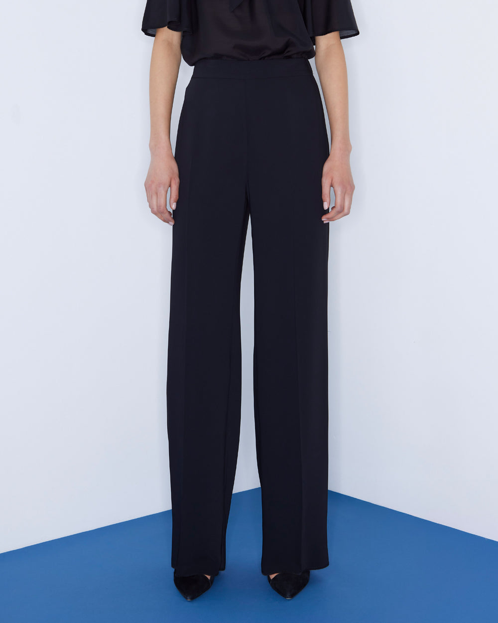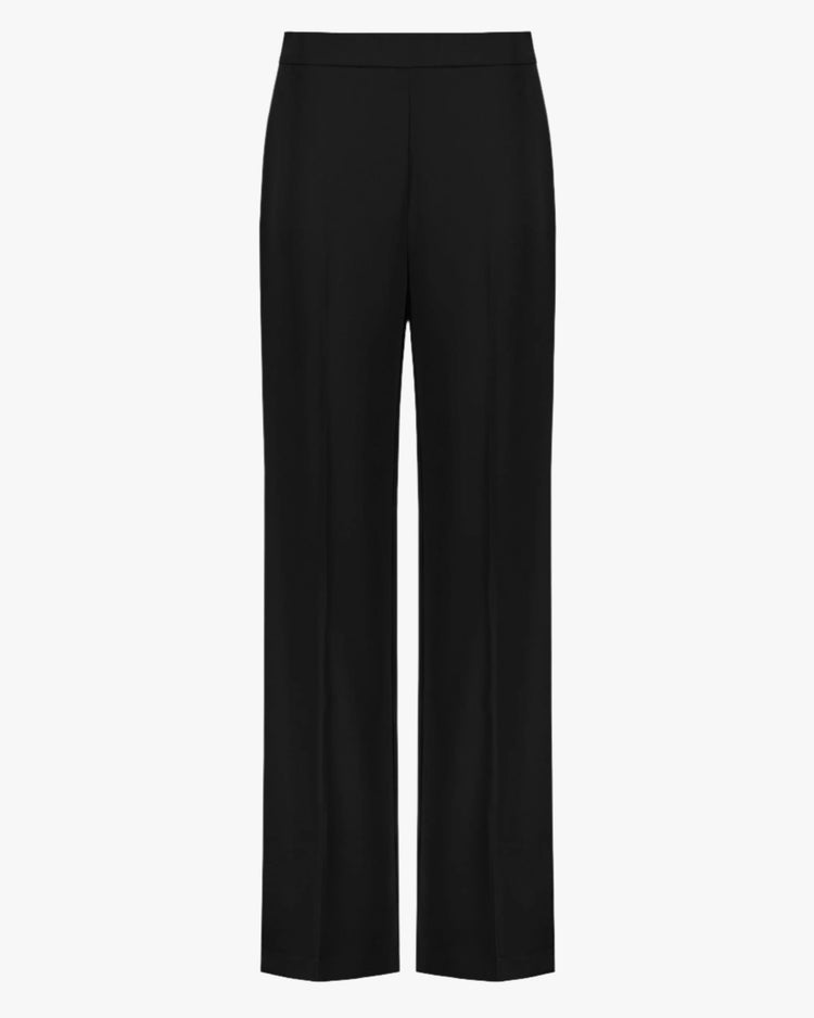 Relaxed fit pant, cut from a matte satin. High rise, featuring an elasticated waist at back, and full length wide-straight leg.