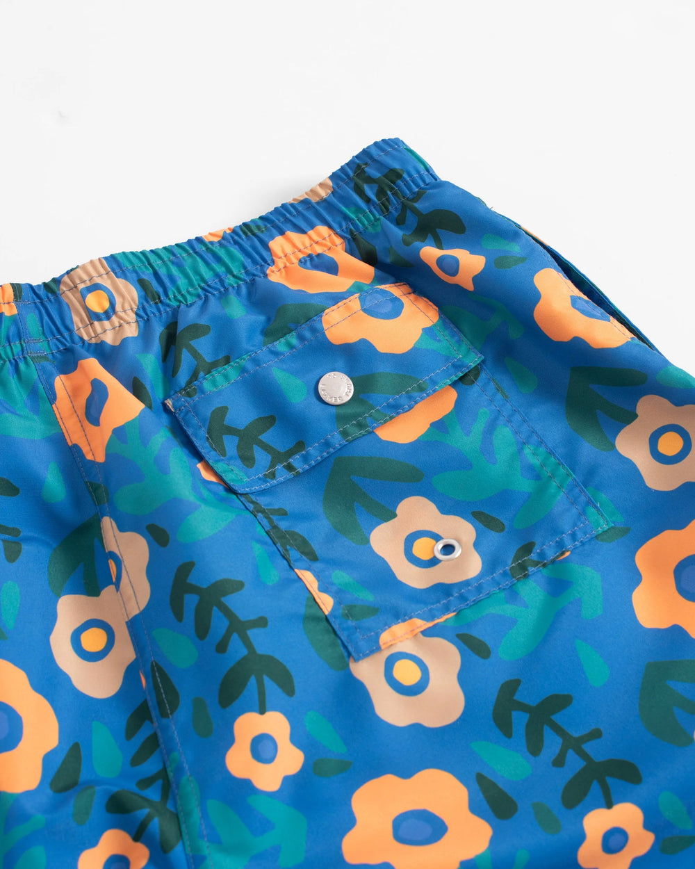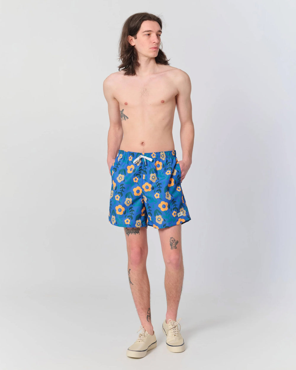 Relaxed fit swim short, cut from Bather's signature recycled quick-dry polyester. Inspired by vibrant wildflowers, the seasonal floral pattern is an abstract and geometric rendition of tropical meadows. Featuring an elasticated waistband with drawstrings and pockets.