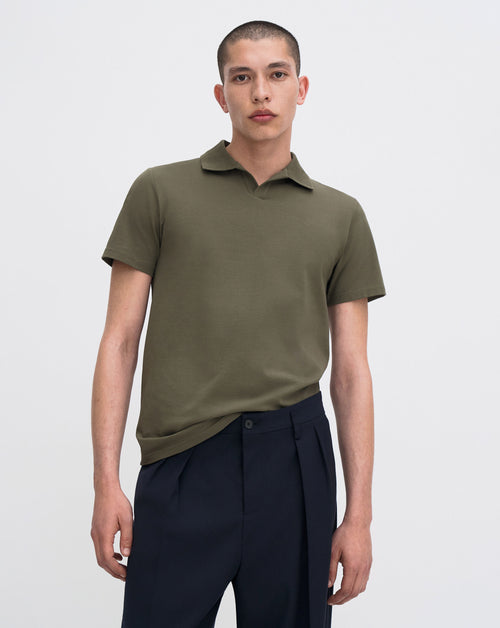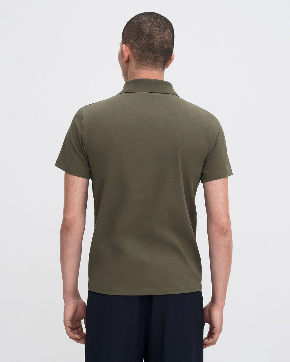 Slim fit polo, cut from a stretch organic cotton jersey. Featuring a flat collar, short unbuttoned placket at chest, short sleeves, and stitched cuffs and hem.