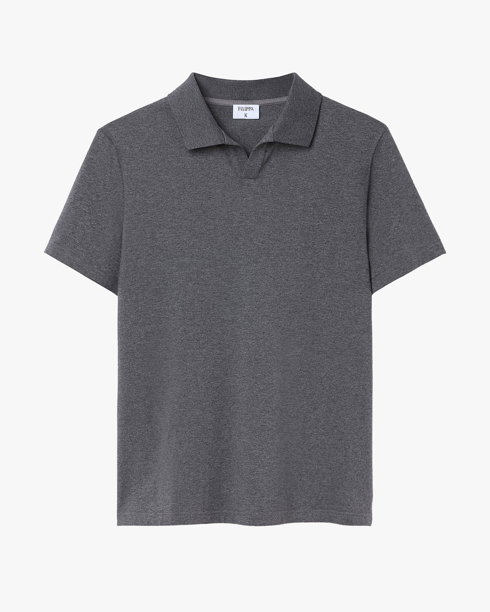 Slim fit polo, cut from a stretch organic cotton jersey. Featuring a flat collar, short unbuttoned placket at chest, short sleeves, and stitched cuffs and hem.