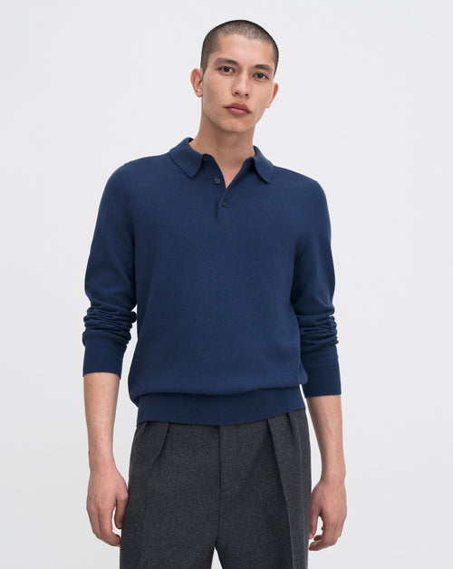 Classic fit polo shirt, knitted in a cotton-wool blend. Featuring a flat knitted collar, three button placket and ribbed cuffs and hem.