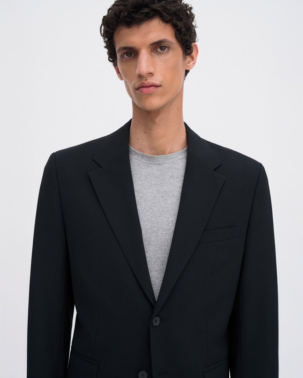 The Hugh Blazer has a regular fit in a midweight wool twill blend with slight stretch. Designed with classic tailoring details. Wear it with the Hugo Trousers for a full suit.