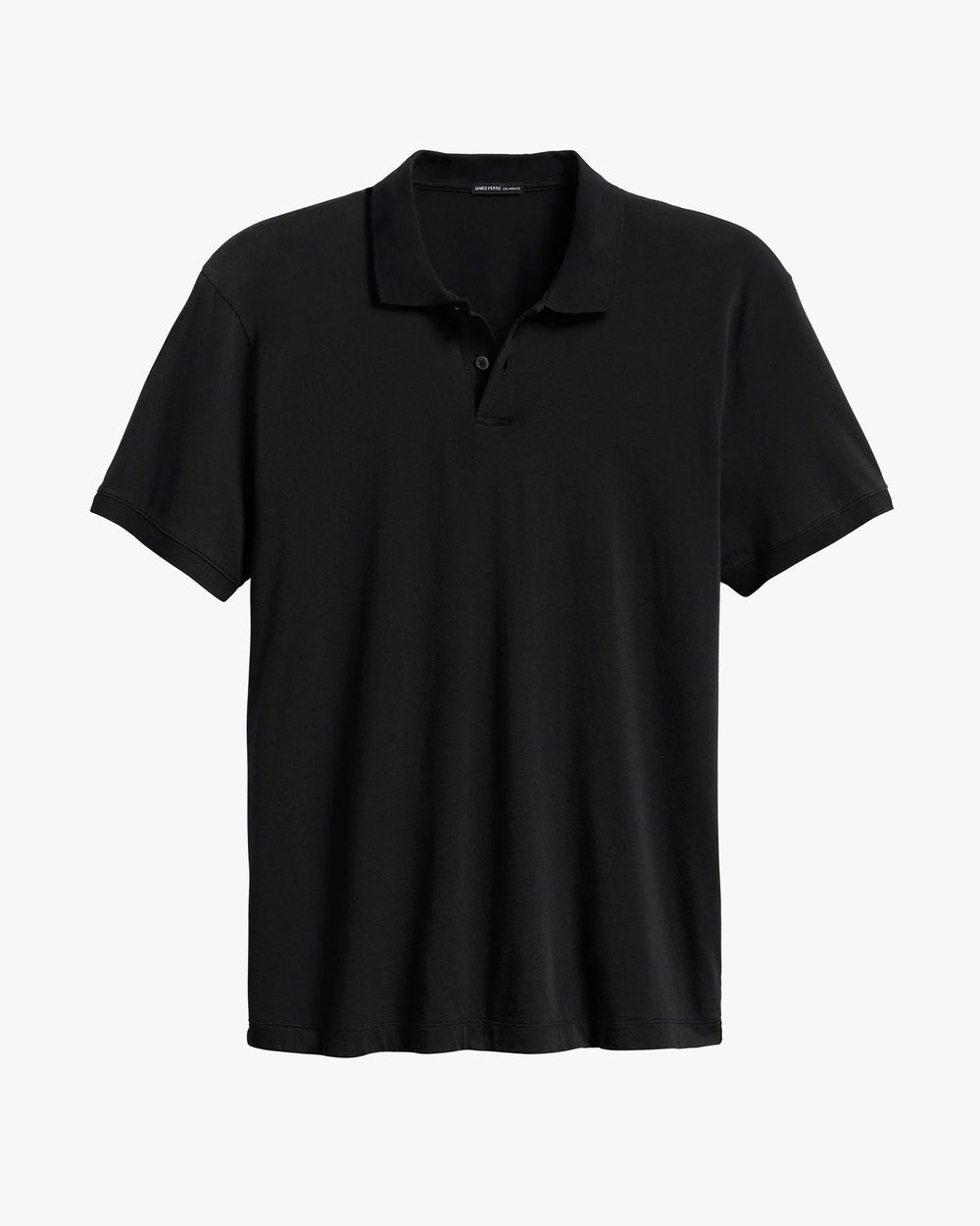 Classic fit polo, cut from a luxe Japanese jersey knit. Featuring a contrast ribbed knit collar, two-button placket at neck, short sleeves and ribbed cuffs.