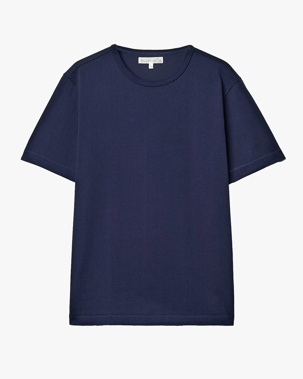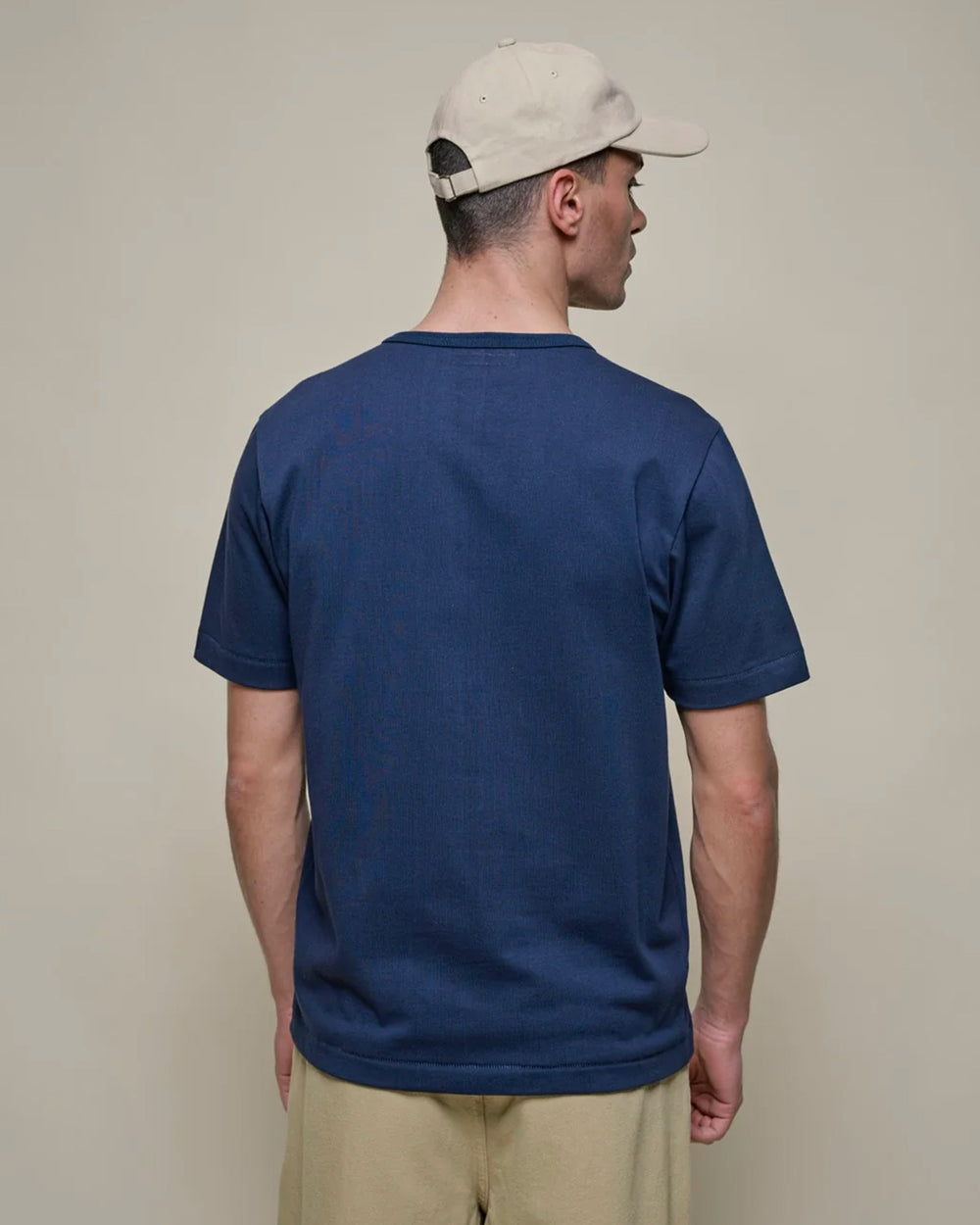 Classic fit t-shirt, cut from a sturdy 6.8oz Organic Cotton jersey. Featuring a classic crew neckline, side seems, under arm inserts and baseball stitching on hem and sleeve cuffs. Constructed on a unique mid-century jersey machine from the 1960s, designed for timeless style and lasting comfort.