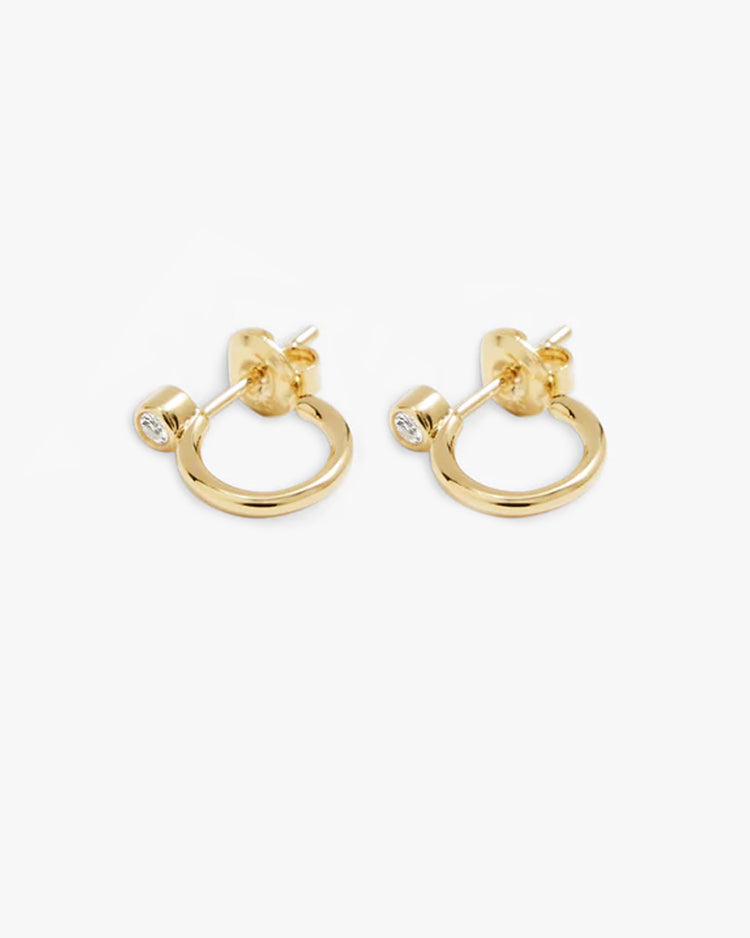 Classic hoop earrings, crafted from sterling silver. An elegant style, bezel set with a floating CZ gemstone at the top of the hoop. These earrings exude simplicity and elegance.
