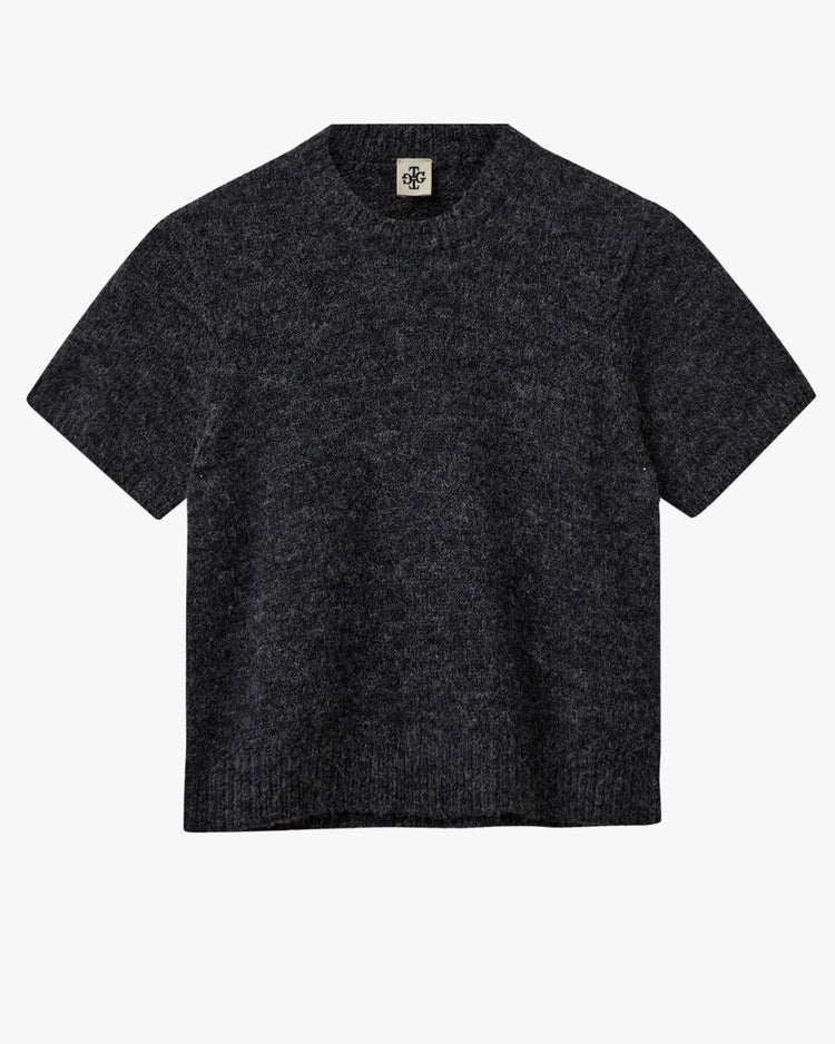 Slim fitting mini sweater, knitted from an alpaca blend. A T-shirt silhouette, featuring a crew neckline, short sleeves, and ribbed neckline, cuffs and hem. Lightweight yet cozy, perfect worn on it's own or layered with other pieces.