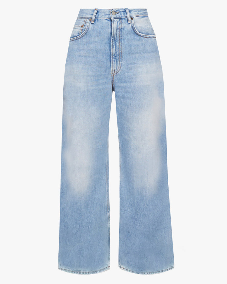 Relaxed fit jeans, cut from a rigid organic cotton. High rise, featuring a wide leg, long length, zip fly and classic 5 pocket detailing.