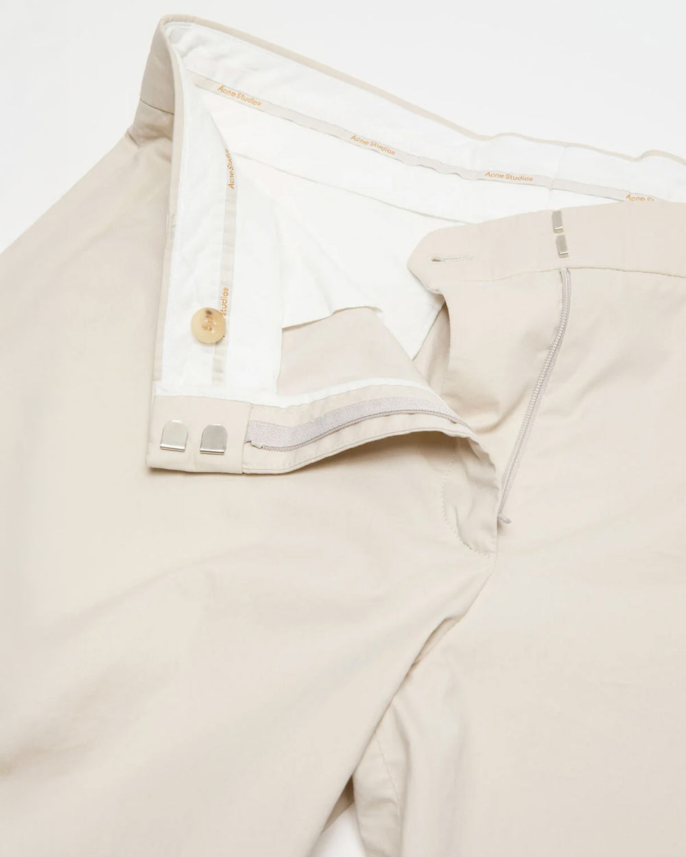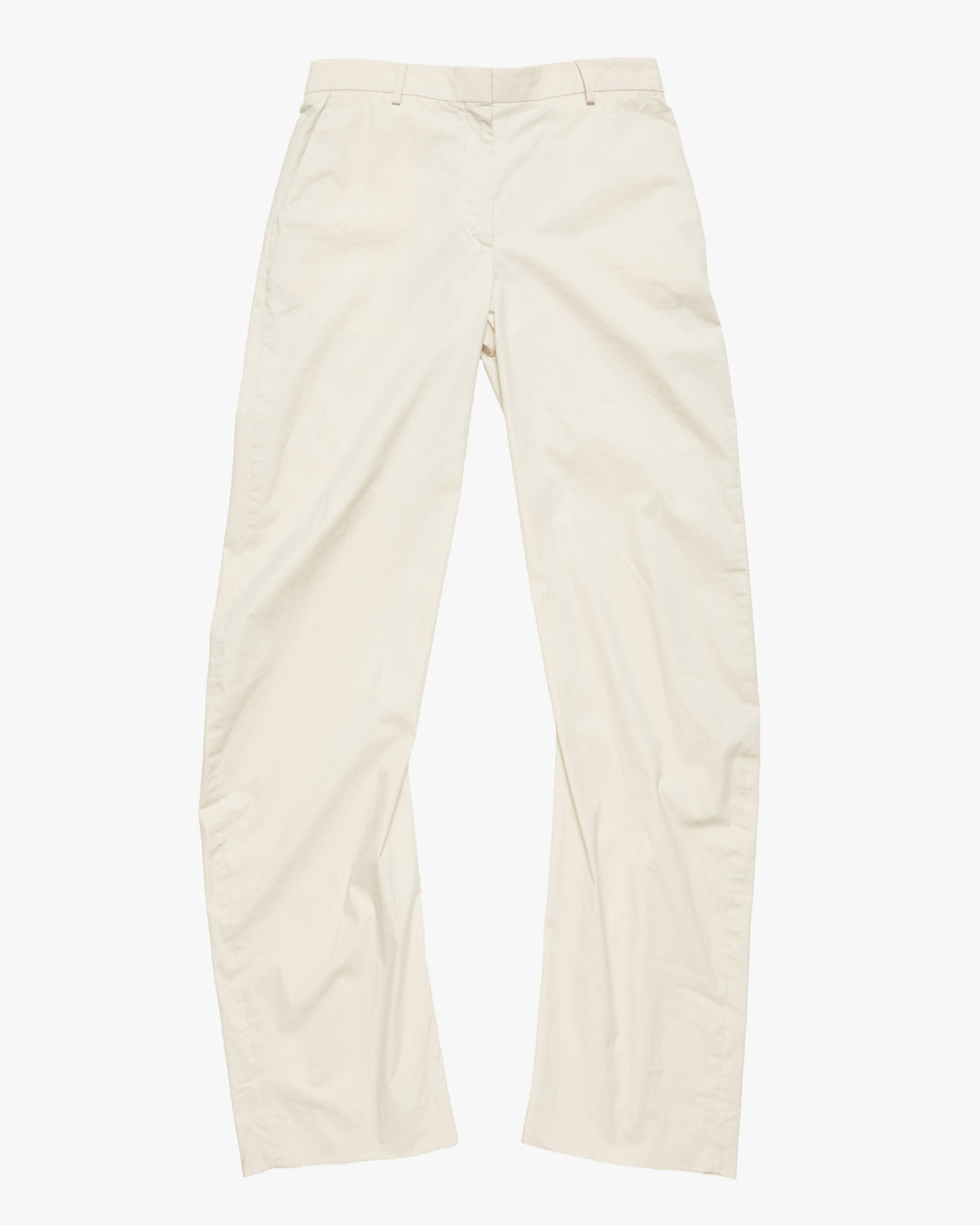 Casual trousers crafted from coated cotton twill. Designed with side-seam pockets, a back pocket with button closure, belt loops, and a button-fly closure. Cut to a regular fit with barrel legs.