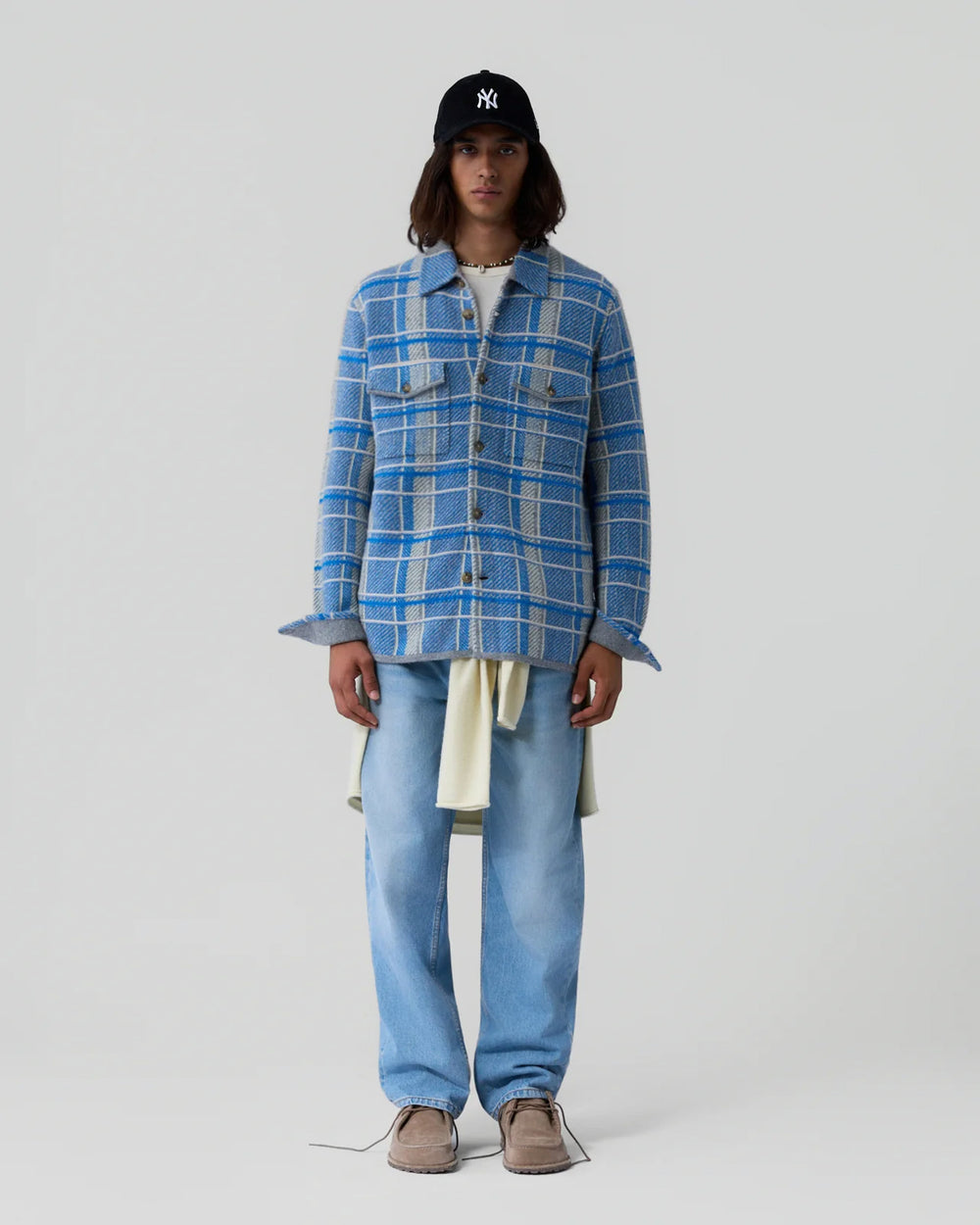 A modern take on western workwear. Oversized fit shirt, knitted from 100% premium cashmere. A shirt jacket silhouette, knitted in a colourful plaid pattern and soft texture. Designed to layer over other Guest In Residence cashmere knits.