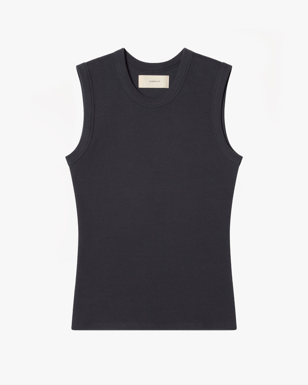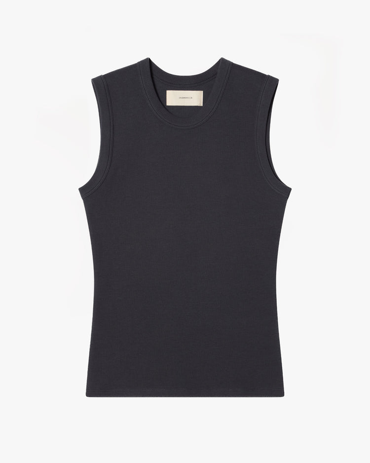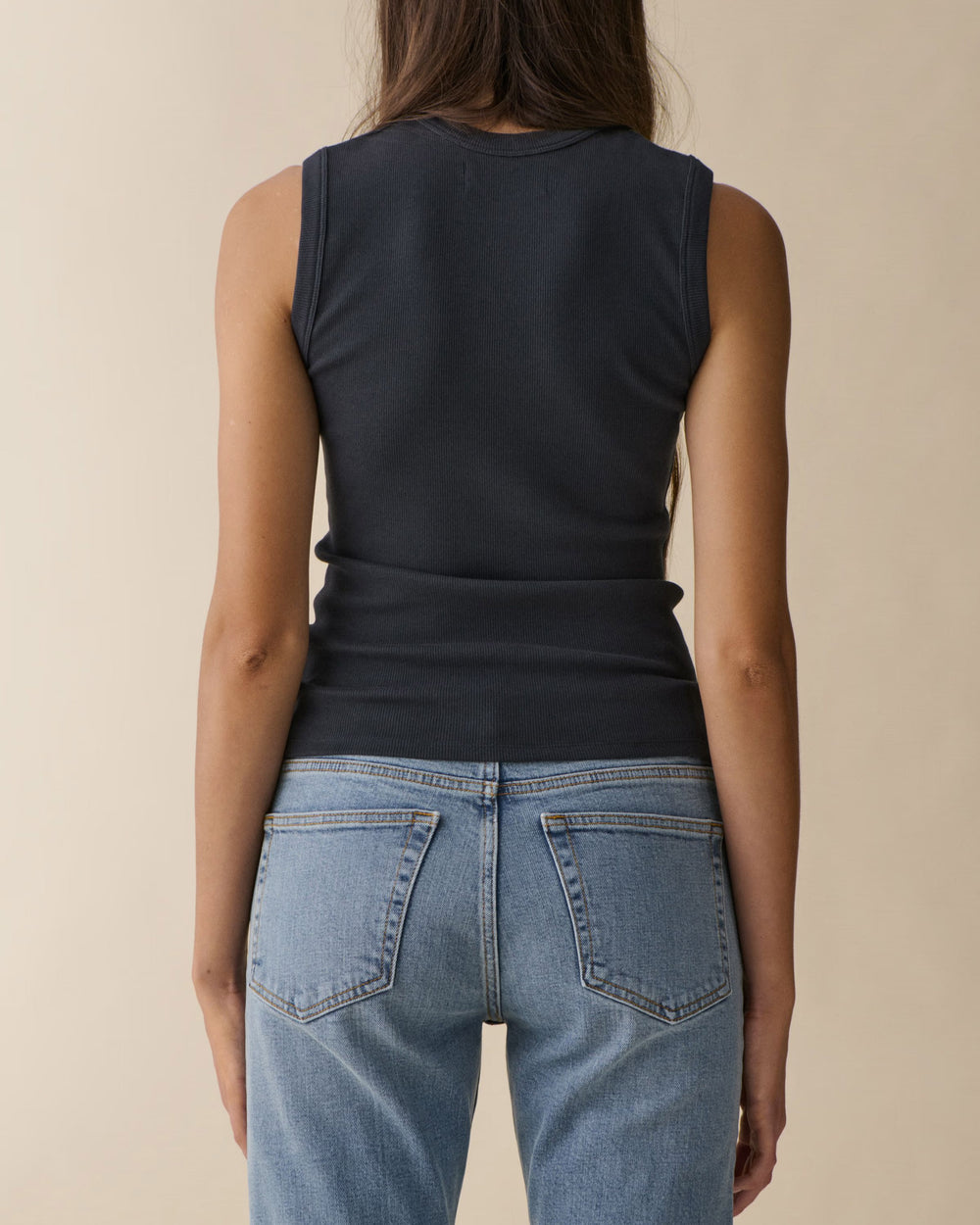 Slim fit ribbed tank, cut from an organic cotton jersey. The 'Vanessa' tank is an updated tank top crafted from heavyweight cotton elastane rib. Featuring sturdy elasticity, a slim silhouette, rounded neckline, and wider shoulders for a contemporary take on a classic.