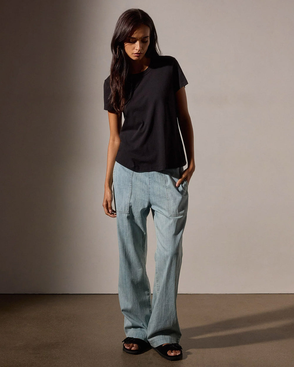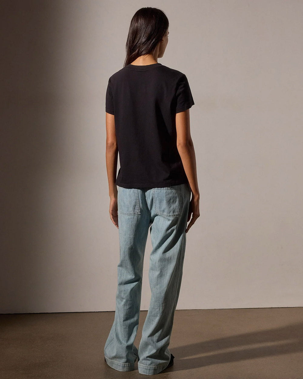 The perfect black baby tee. Relaxed fit t-shirt, cut from a soft cotton jersey. in a cropped, vintage silhouette. Wear with your favourite pair of blue denim jeans.