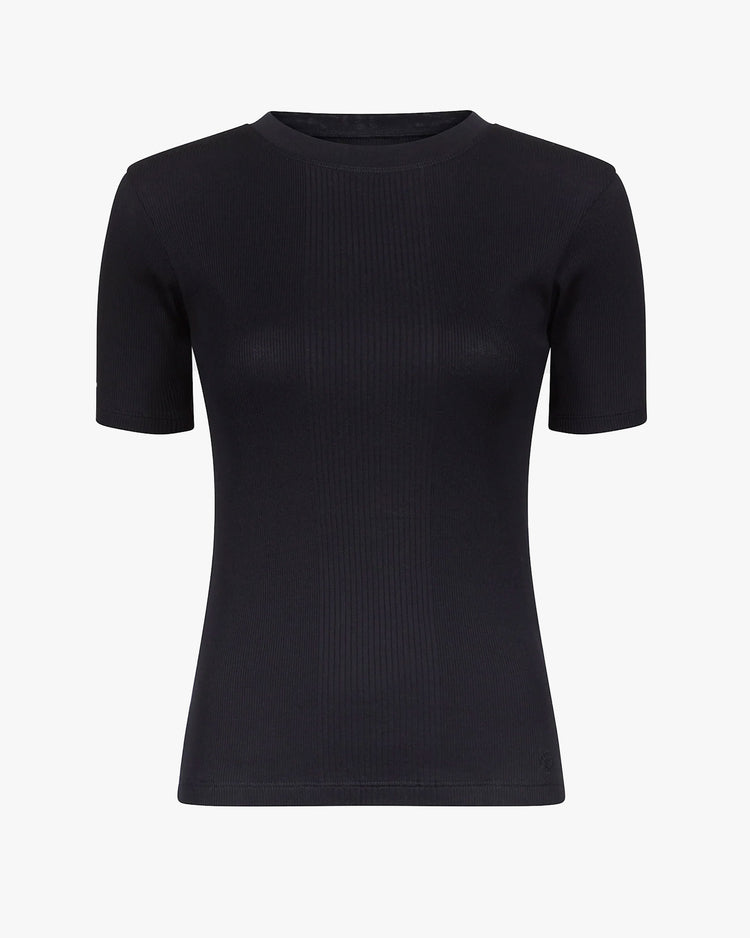 Classic slim fit top, cut from 100% soft mercerized cotton. A ribbed design, featuring a crew neckline, thick ribbed detailing down center front, elbow-length fitted sleeves and embroidered shell logo at hem. Making it the perfect elevated basic.