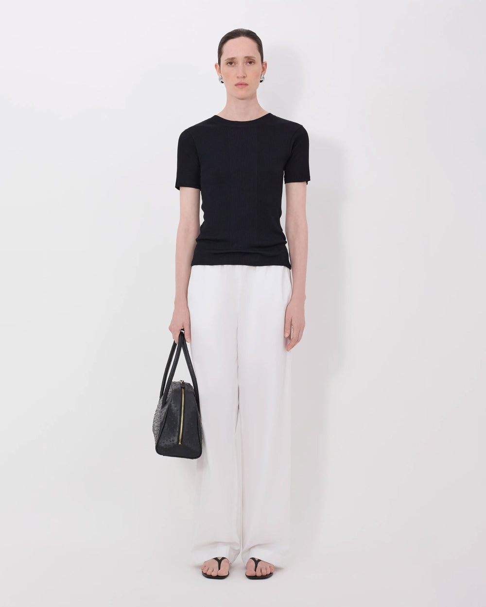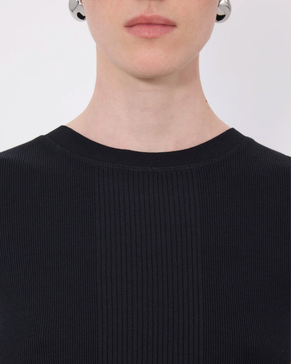 - Ribbed crew neckline