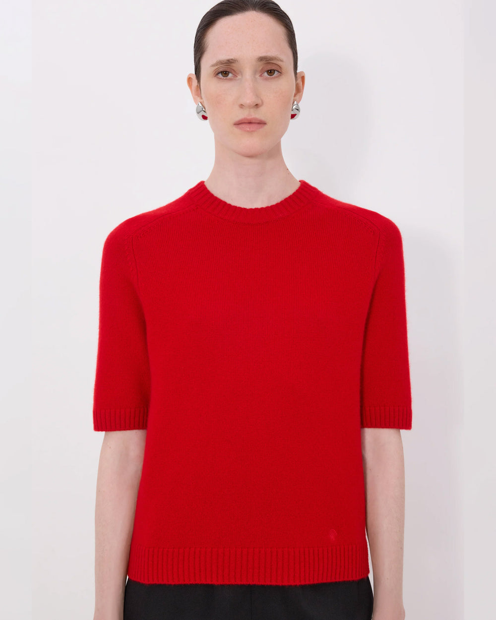 The Dara Short sleeve top is knitted from pure cashmere. Featuring a straight fit, elbow-length raglan sleeves and a crew neck with rib details, it can be worn by itself or layered under a cardigan.