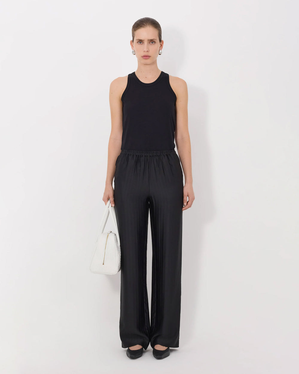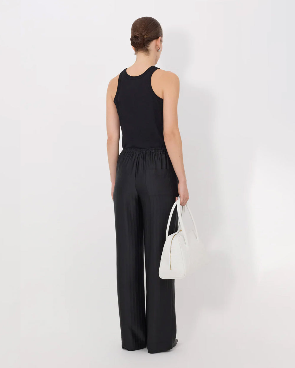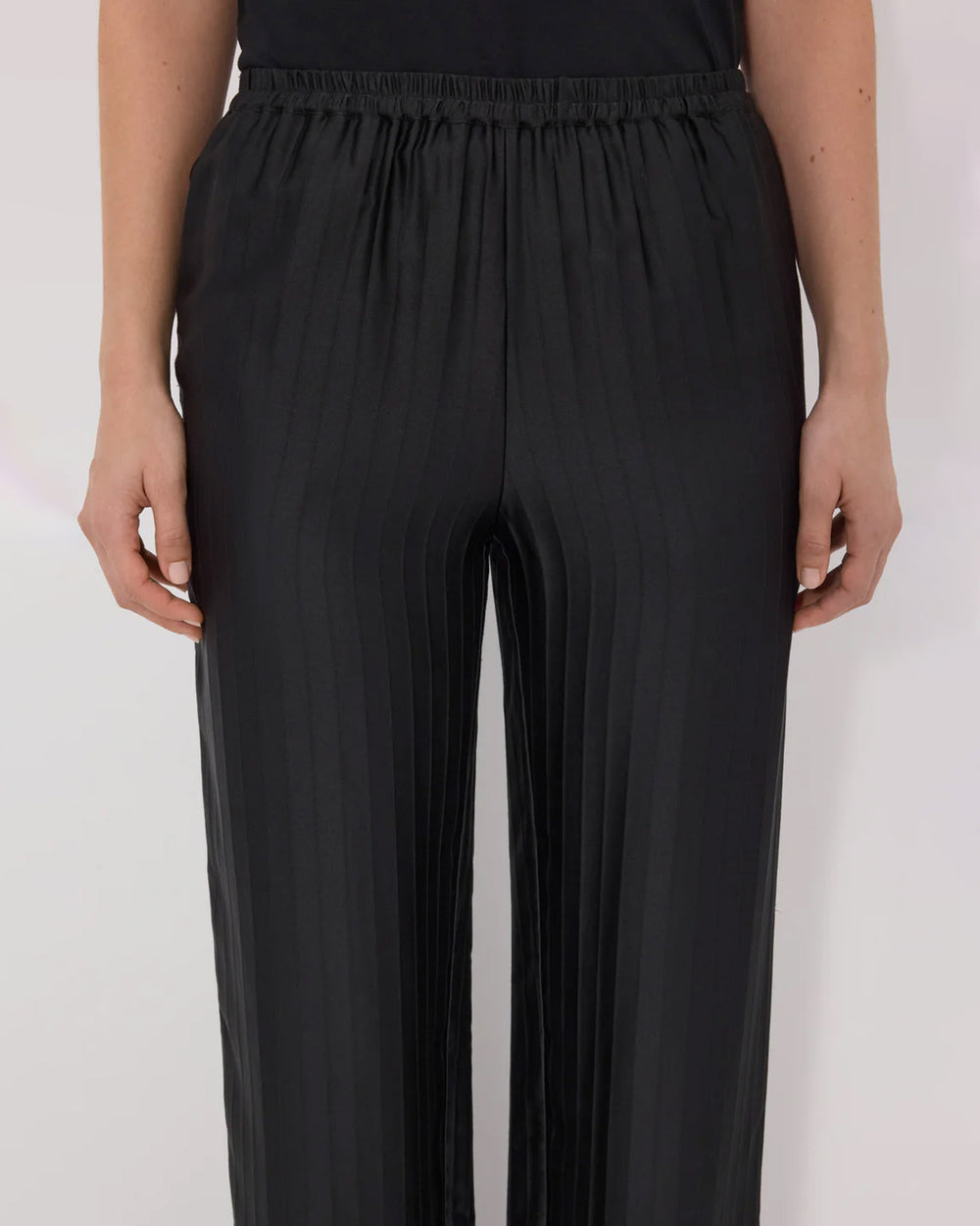 Relaxed fit trousers cut form a monochrome striped silk blend. The Kadala Loose Fit Pant feature a wide leg, mid-rise elasticated waistband, side seam pockets and one back patch pocket. They can be layered with the matching Fonda top for an elevated total look.