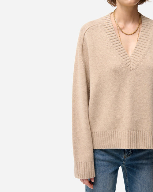Relaxed fit sweater, knitted from a Wool Yak Blend. Featuring a V-neckline with wide ribbed detail, and ribbed cuffs and hem. Elegant and casual, the Fernanda V-neck wool sweater stands out with its straight cut and soft drape, an easy-to-wear everyday essential.