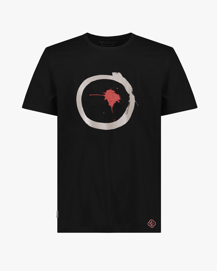 A core Workshop Denim style. Standard fit t-shirt cut from superfine combed cotton jersey and emblazoned with Artwork from renowned New York artist Max Gimblett. Featuring a bound crew neckline, short sleeves, straight hem and a large Red Enzo graphic print. Enzyme washed to achieve a soft lived in hand feel.