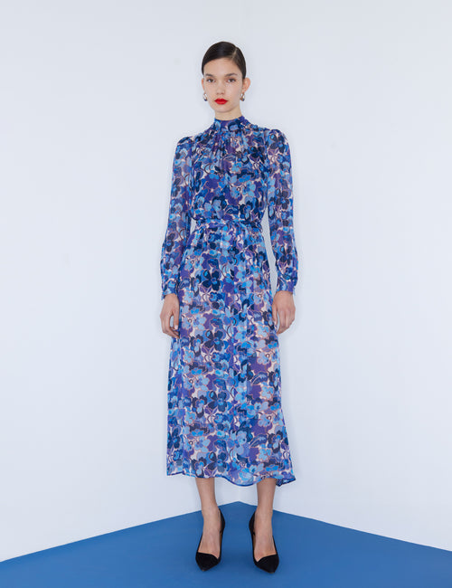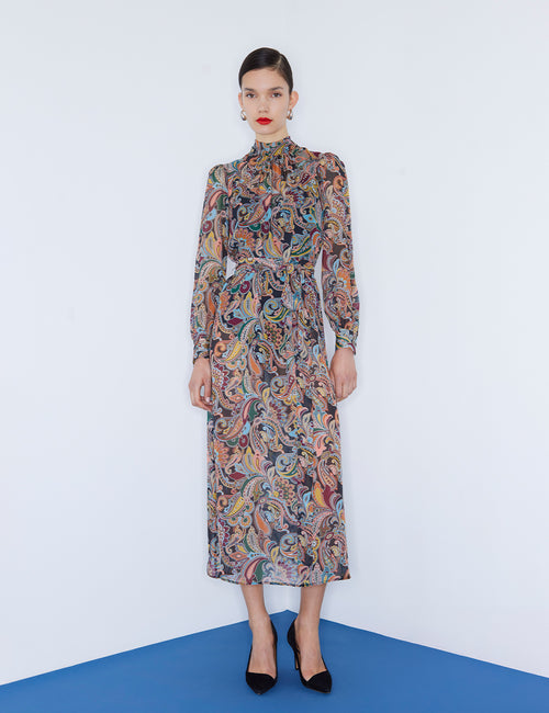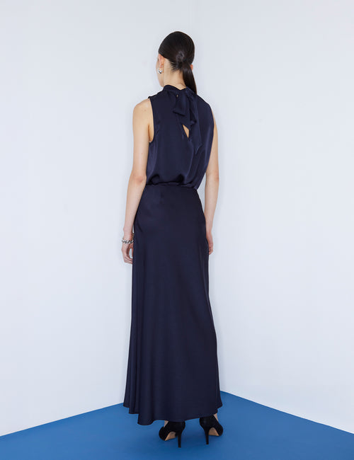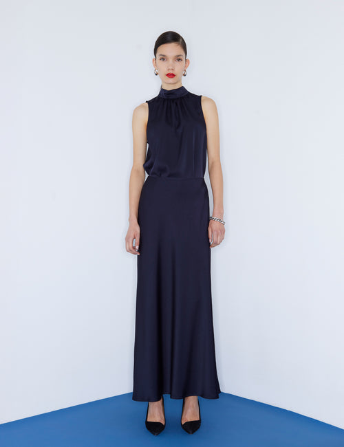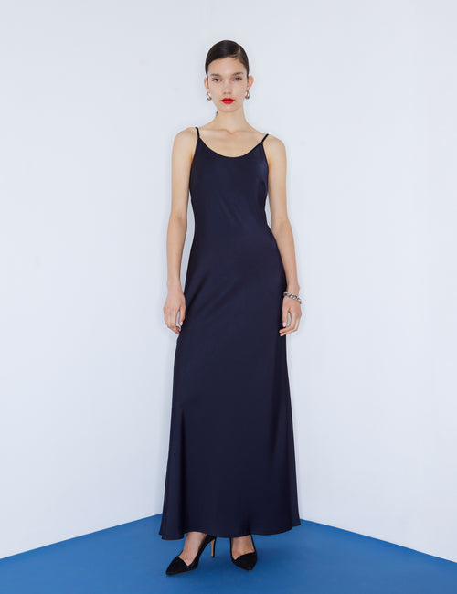 Satin and printed silk form the heart of the collection. New styles, the Lucienne Dress and Marilyn Blouse capture fluid movement and effortless elegance, and the bias slip dress and skirt return in an elongated silhouette.