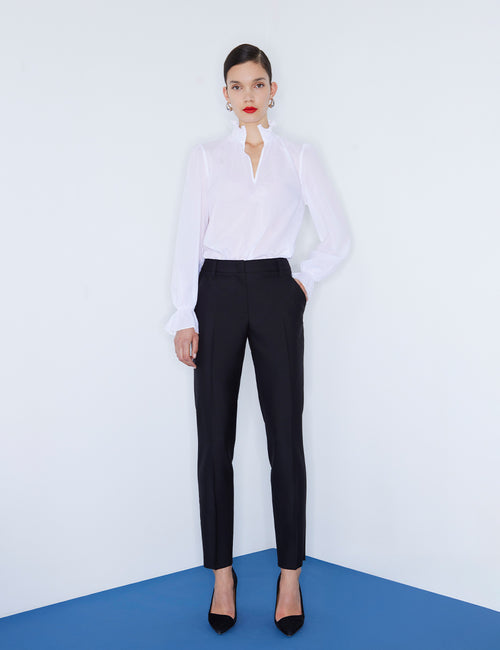 Tailored elements complement the softness of the collection, grounding it with a refined structure. Signature tailored jackets and trousers are presented in new season wool suiting, including the beloved Milan and Paris jackets.
