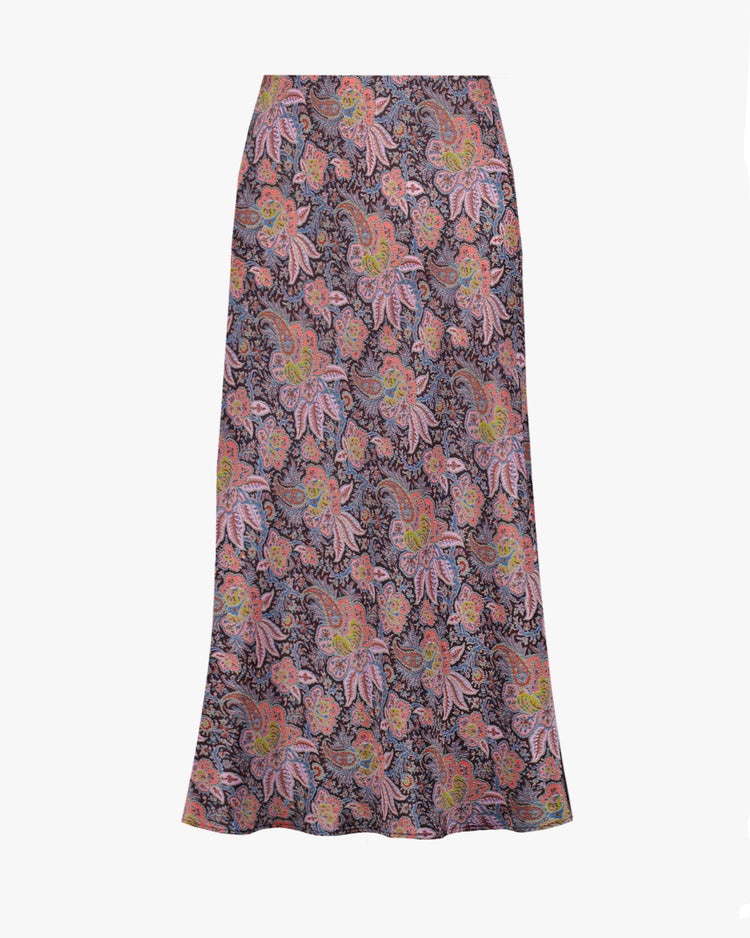 Relaxed fit skirt, cut from a floral printed silk crepe de chine. A feminine silhouette, cut on the bias and featuring an elasticated waistband.