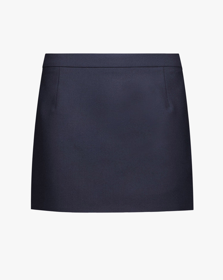 Classic fit mini skirt, cut from a navy wool suiting. Mid-rise, featuring a tailored waistband and invisible zip closure at side. Pair with the matching Helen Cherry Florence Jacket.