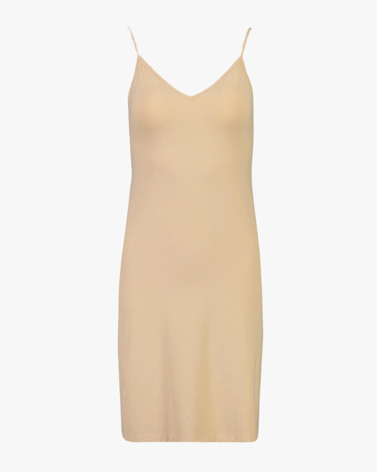 V-neck slip undergarment. Suitable to wear underneath our collection of sheer silk dresses and blouses.