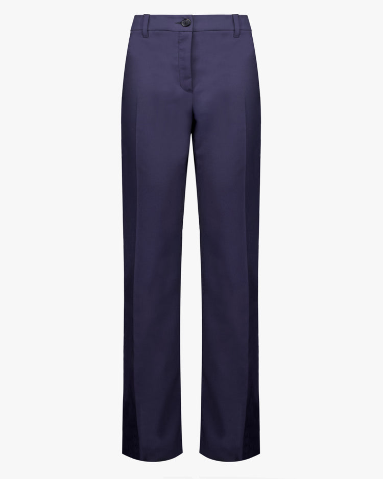 High waisted trouser, cut from a tropical wool suiting. Featuring a wide straight leg, tailored waistband and legs pressed with centre creases. Pair with the matching Helen Cherry