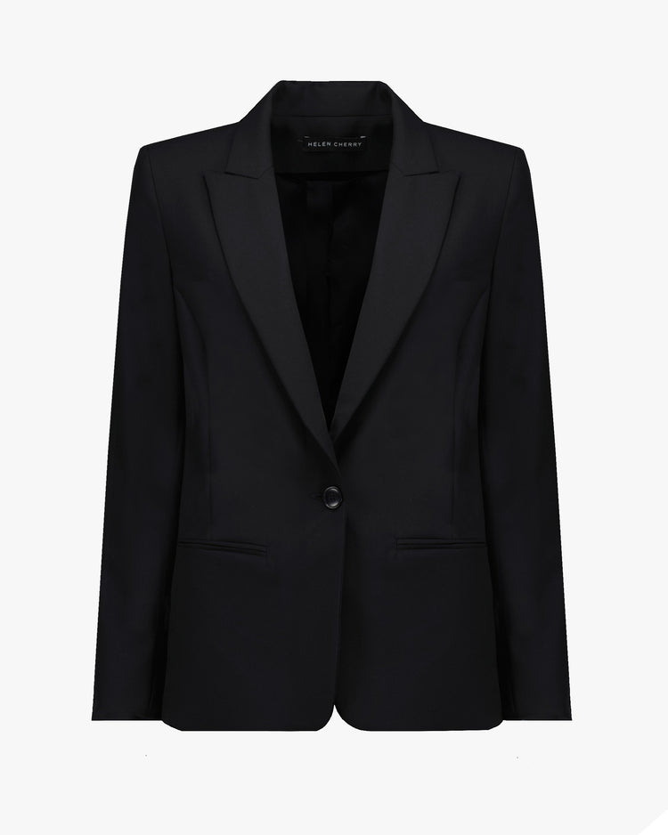 Classic fit jacket, cut from a wool suiting. Single breasted, featuring a peak lapel, single button closure at front and jet pockets at front. Pair with the Helen Cherry Classic Cigarette Pant.