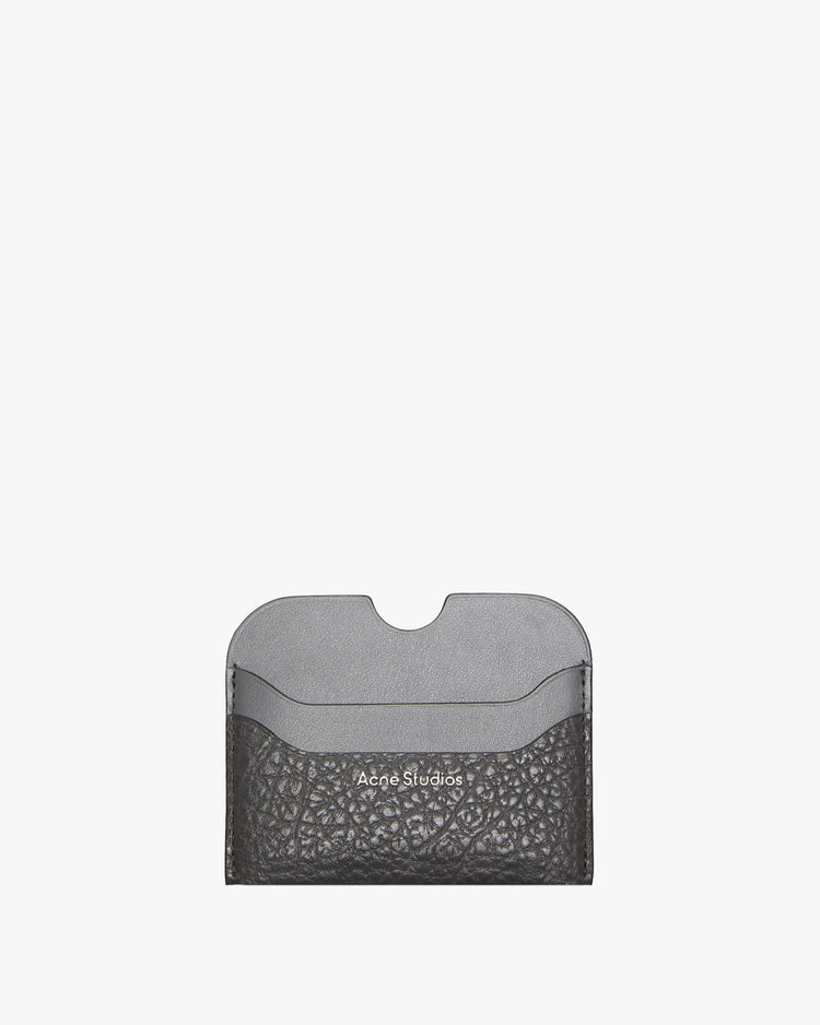 An essential for everybody. A large, card holder, crafted from smooth & soft grained leather. A two-toned design, featuring five card slots compartments, and finished with embossed silver Acne Studios logo stamp.