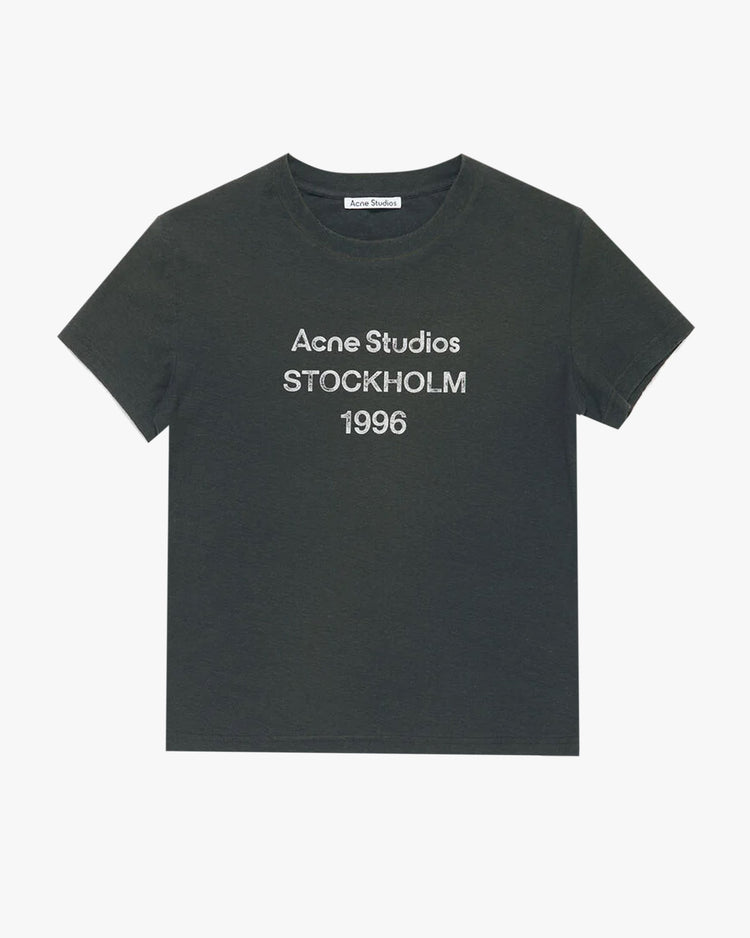 Slim fit tee, cut from an organic cotton jersey. A 'baby-tee' silhouette, featuring a crew neckline, distressed details on neck, arm and hem, cropped length and a large Acne Studios 1996 logo at the front.