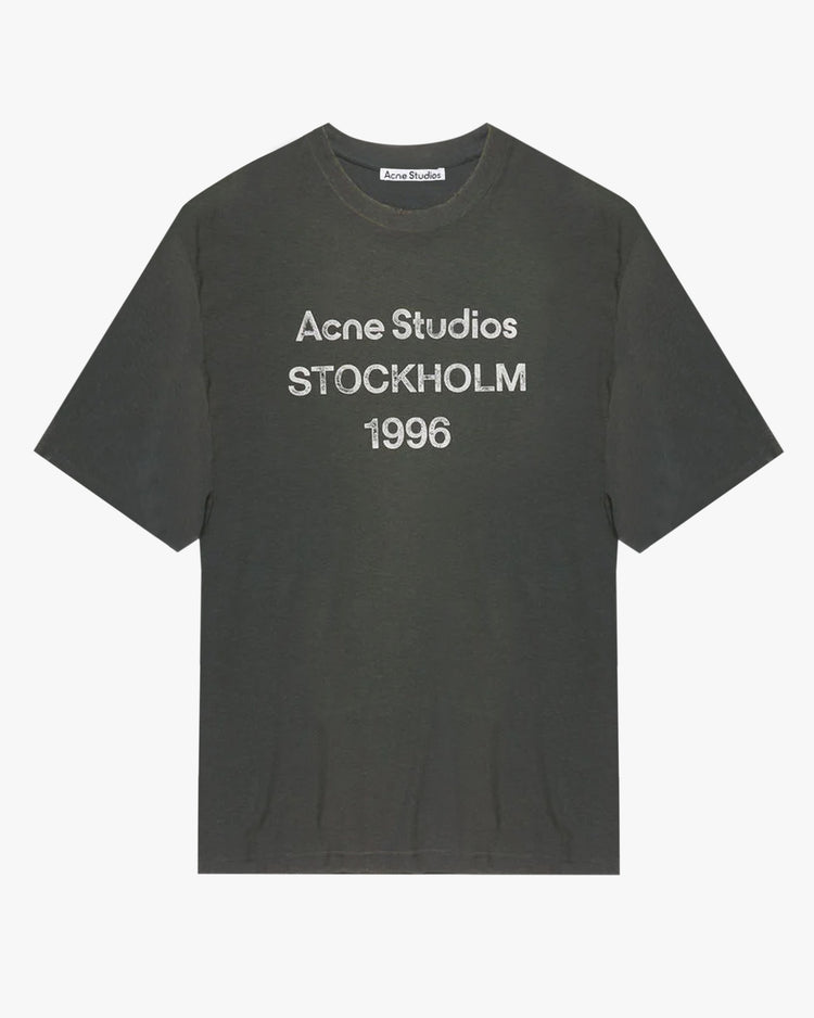 Oversized fit t-shirt, cut from a cotton-hemp blend t-shirting with a sprayed vintage finish. Featuring a crew neckline, dropped shoulder, elbow length short sleeves and 'Acne Studios STOCKHOLM 1996' print on front.