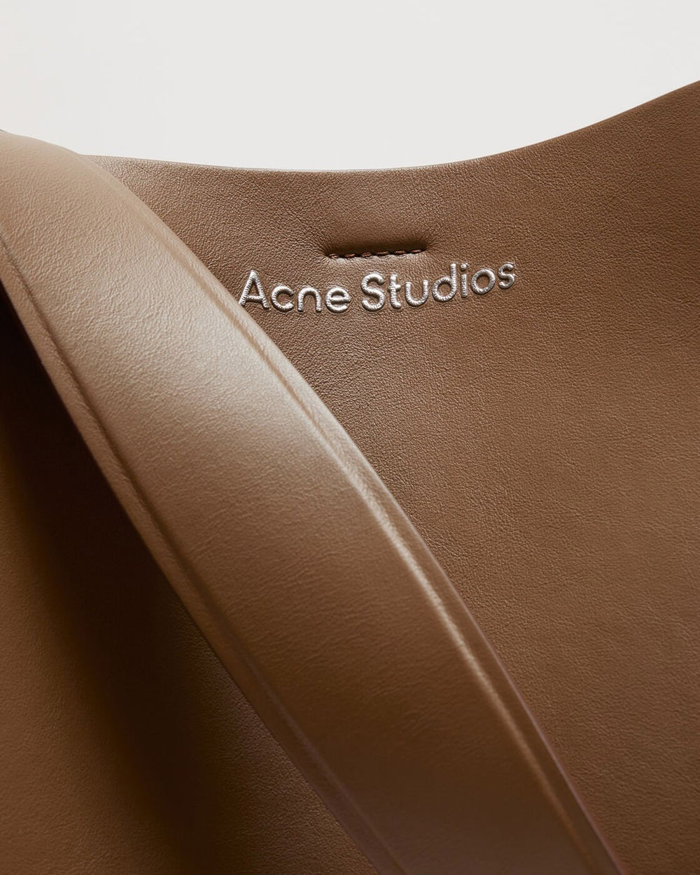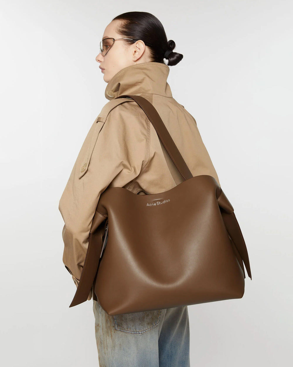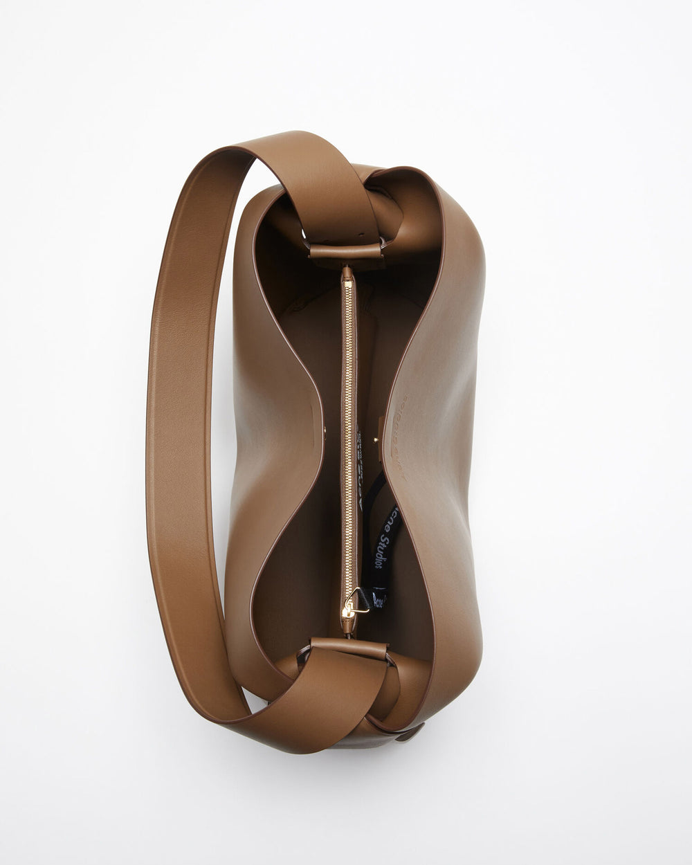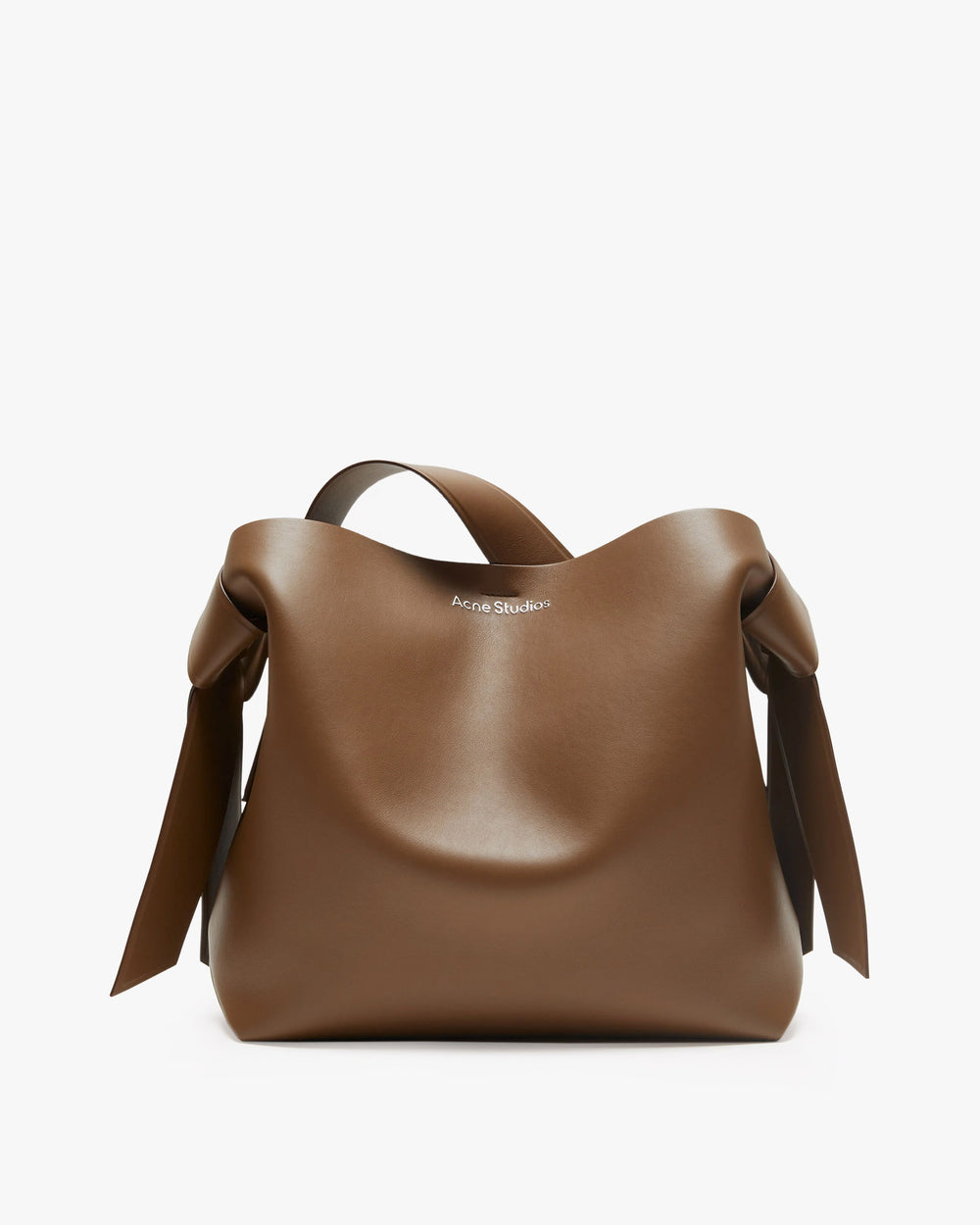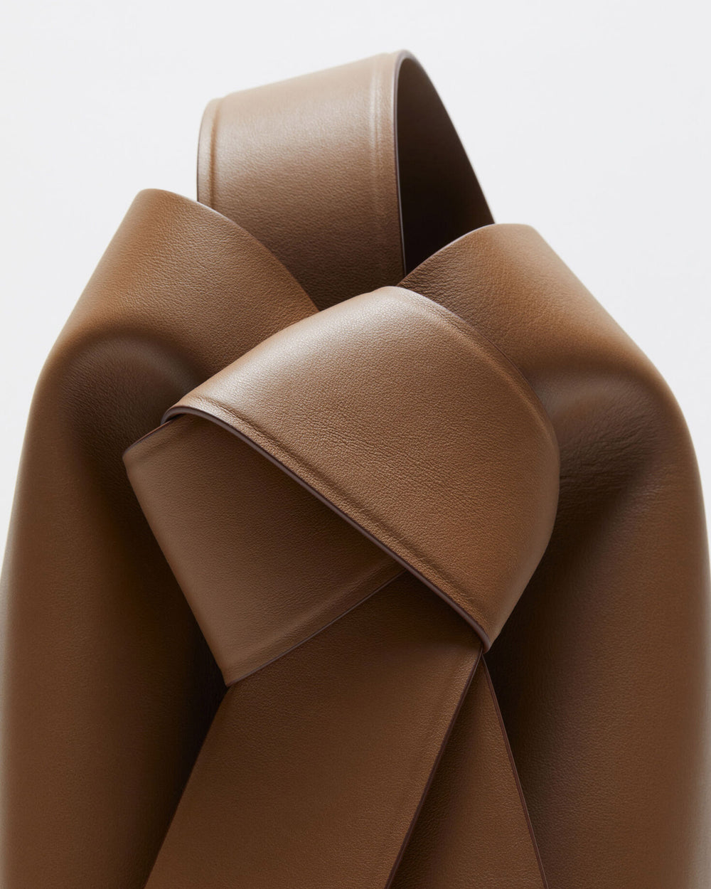 A midi sized bag, crafted from matte smooth leather. Featuring twisted knots inspired by traditional Japanese obi sashes, adjustable shoulder strap and metallic Acne Studios logo. The Musubi Midi will quickly become your go-to everyday bag.