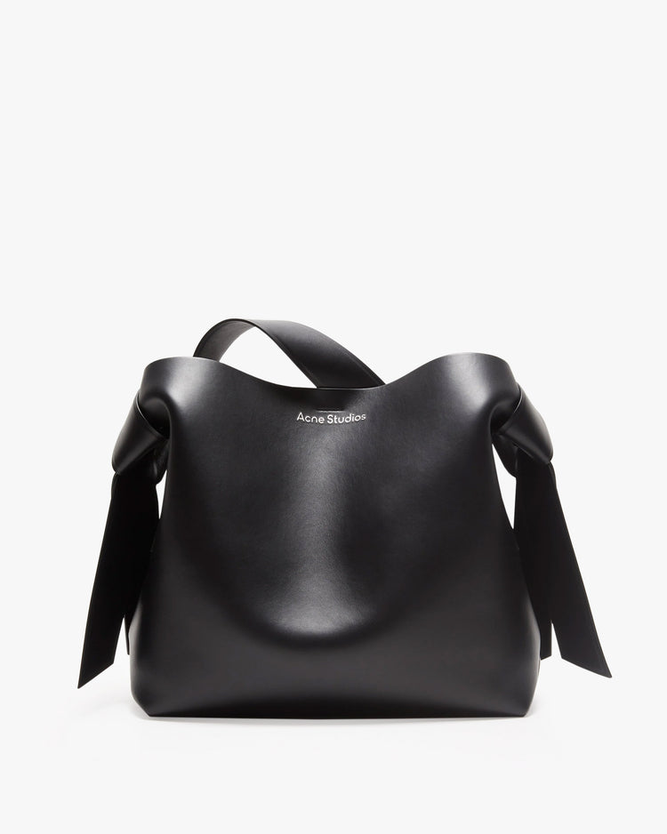 A midi sized bag, crafted from matte smooth leather. Featuring twisted knots inspired by traditional Japanese obi sashes, adjustable shoulder strap and metallic Acne Studios logo. The Musubi Midi will quickly become your go-to everyday bag.