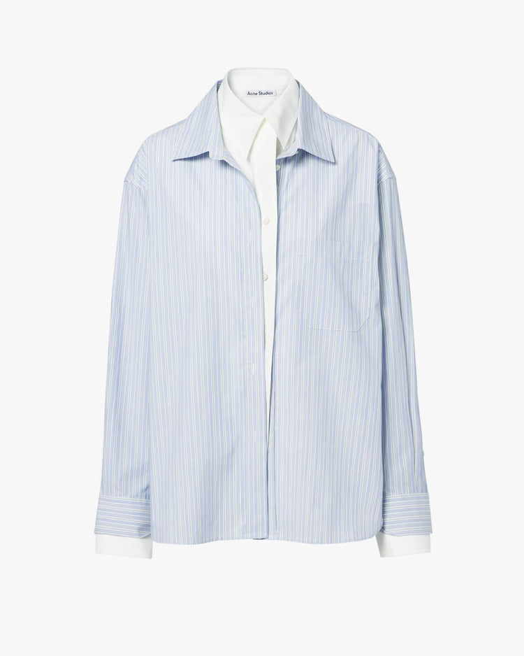 - Striped blue shirting layered on contrast white shirting