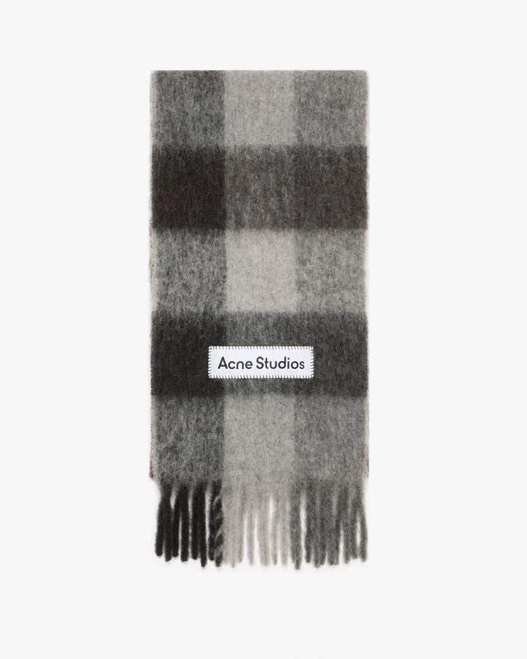 Blanket scarf made from a soft alpaca-wool blend. Featuring fringed edges and large woven Acne Studios label. The perfect addition to your winter wardrobe.