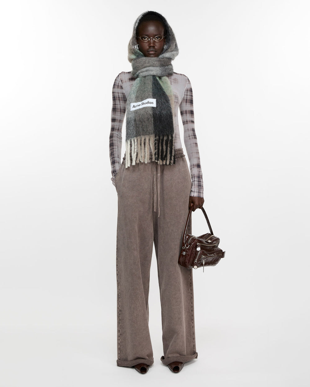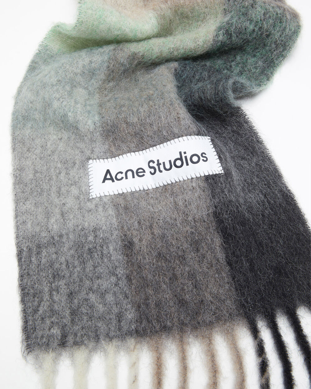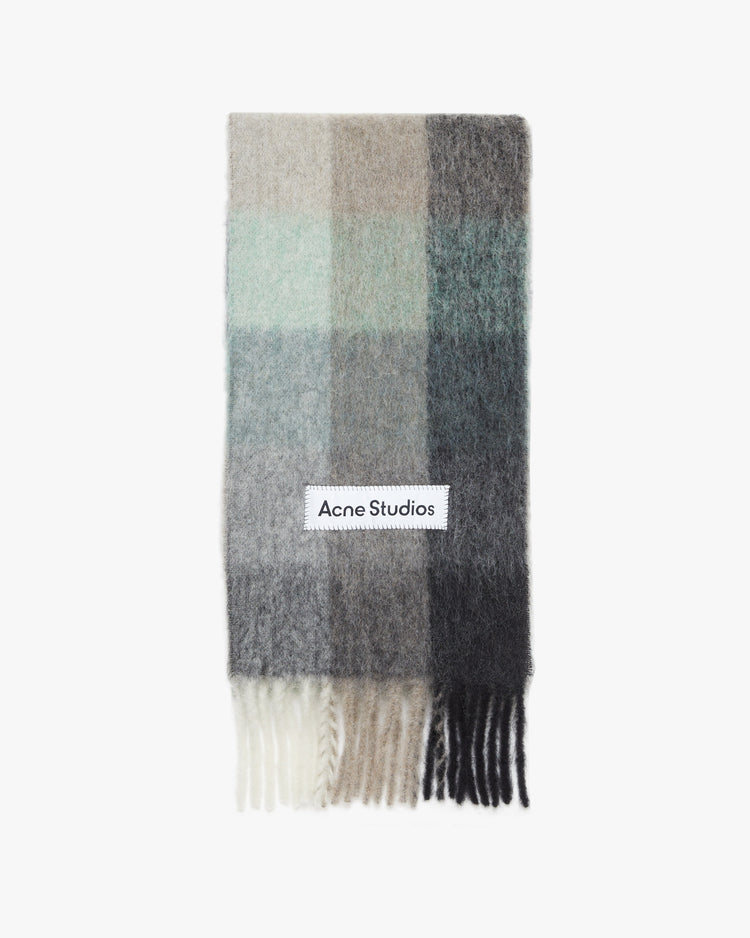 Blanket scarf made from a soft alpaca-wool blend. Featuring fringed edges and large woven Acne Studios label. The perfect addition to your winter wardrobe.