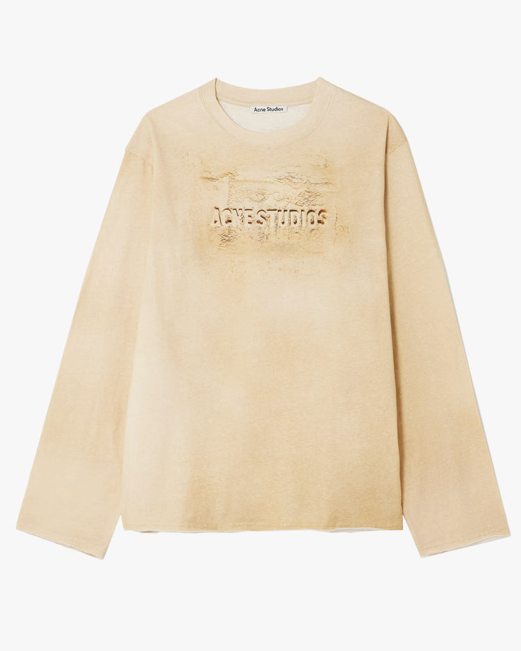 Relaxed fit t-shirt, cut from an organic cotton, vintage textured jersey. Featuring a crew neckline, dropped shoulder, extra long sleeves and a seasonal logo print, Acne Studios on front and Stockholm, Paris print on back.