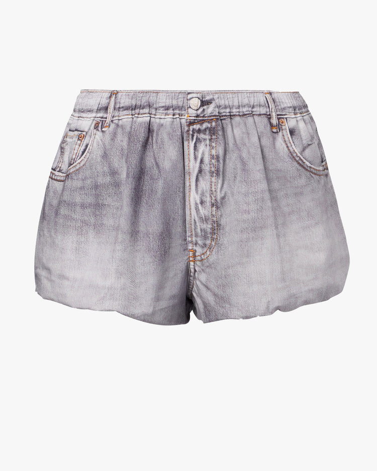 Relaxed fit puff shorts, cut from cotton with denim inspired trompe l'oeil print. A voluminous silhouette, Featuring an elasticated waistband and hem, and signature Acne Studios logo detailing.
