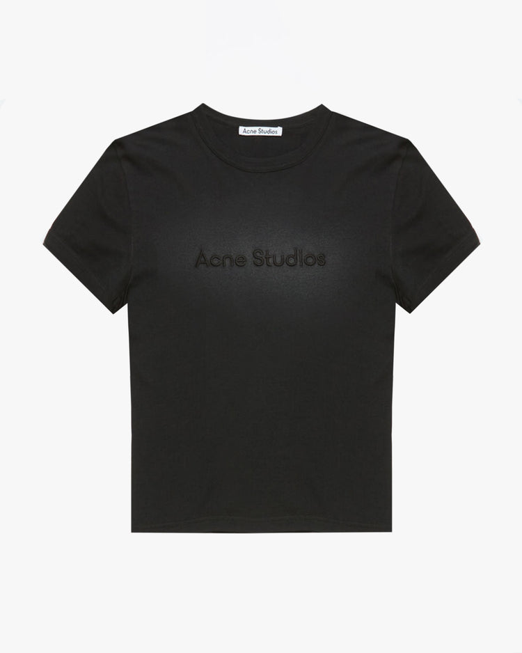 Slim fit tee, cut from an organic cotton jersey. A garment dyed faded finish with a textured feel, featuring a crew neckline, short sleeves and blurred Acne Studios logo on front.