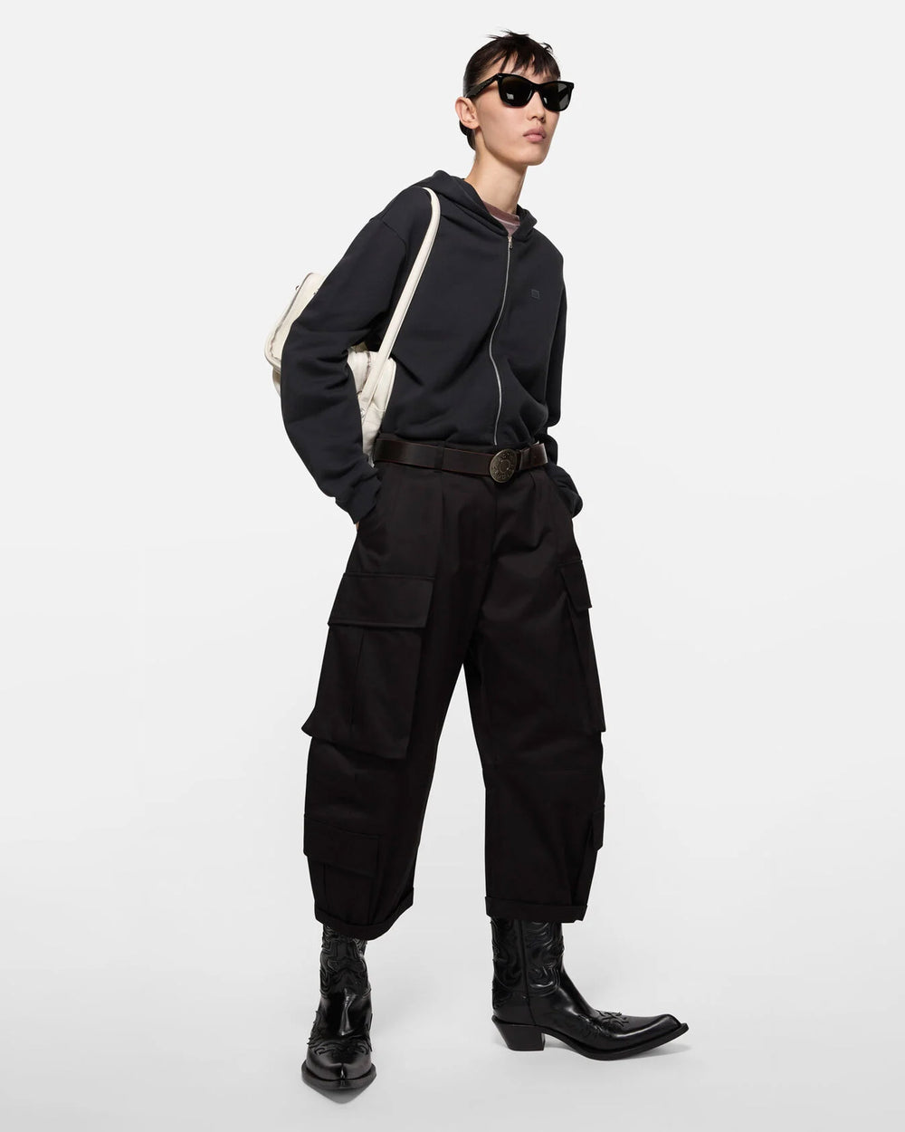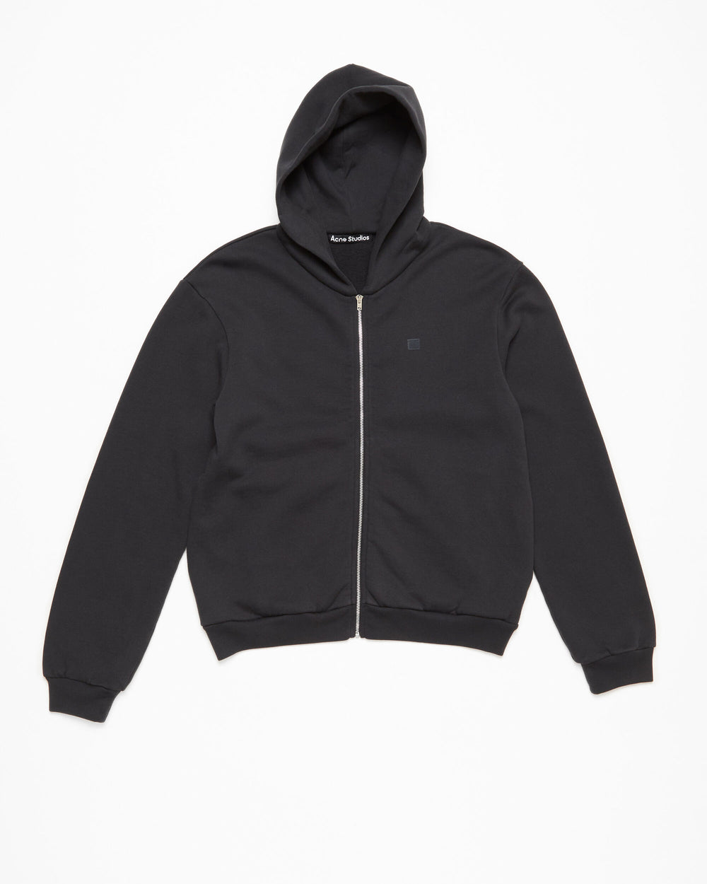 Slim fit unisex hoodie, cut from soft brushed fleece cotton. Featuring a hood, zip up front, ribbed cuffs and hem, and finished with a signature embroidered Face logo patch on chest.
