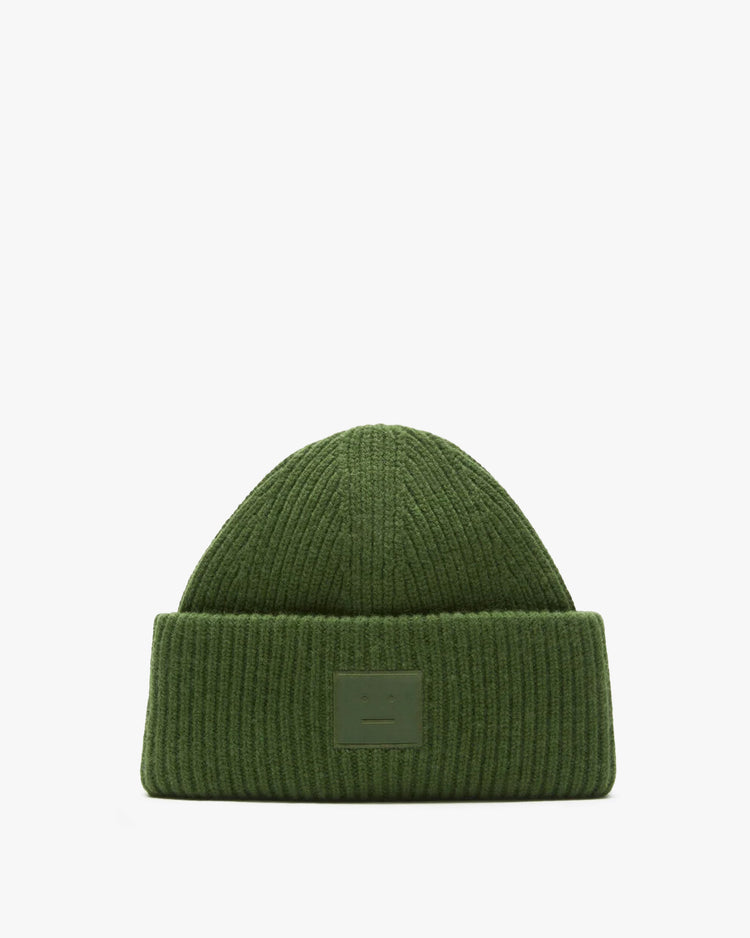 Chunky beanie, knitted from a thick rib-stretch wool. Featuring a wide fold-over hem with embroidered Face logo patch.