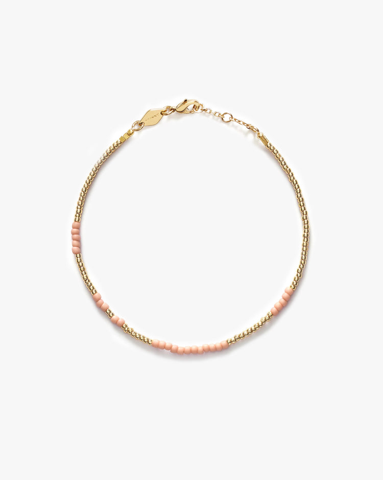 Delicate handcrafted bracelet, detailed in orange coloured glass beads and 18kt gold plated seed beads. Wear on its own or layered with your other jewels.