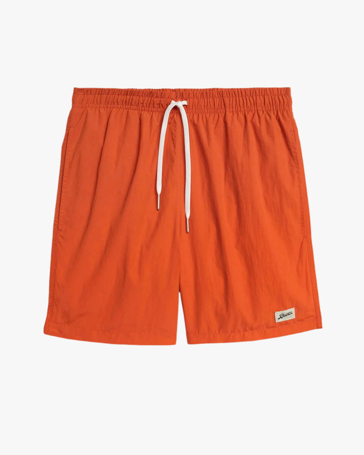 Relaxed fit swim short, cut from a recycled quick-dry nylon in orange. Featuring an elasticated waistband with drawstring, patch pocket at back with snap closure and comfortable four-way stretch mesh lining. Perfect for the poolside or styling with a light-weight cotton button up for an effortless summer look.