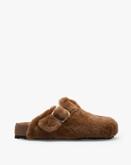 Rendered for the premium 1774 line. The iconic Boston silhouette, crafted from a luxurious shearling. Slip-on style, featuring a rounded closed toe, adjustable exclusive 1774 silver toned buckle, and signature Birkenstock 1774 anatomical footbed.