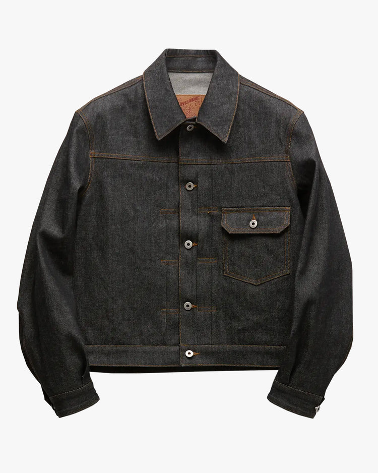 A modern interpretation of the classic trucker jacket, COOR's Type 1 Rigid Trucker Jacket is cut from premium indigo denim in a cropped fit. The modern silhouette features a single front chest pocket with button closure, contrast stitch detailing and the brand's signature back panel stitching.