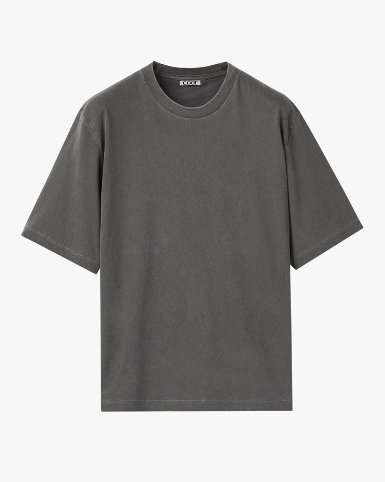 Oversized fit t-shirt, cut from a pigment dyed cotton jersey. Featuring a binded crew neckline with reinforcement to prevent stretch, dropped shoulders, short sleeves, chain stitching. Pigment dyeing process used to create a unique color.