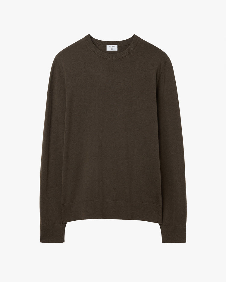 Classic fit sweater, knitted from a soft lightweight merino wool. Featuring a round neckline, long sleeves and finished ribbed neckline, cuffs and hem.
