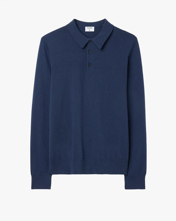 Classic fit polo shirt, knitted in a cotton-wool blend. Featuring a flat knitted collar, three button placket and ribbed cuffs and hem.