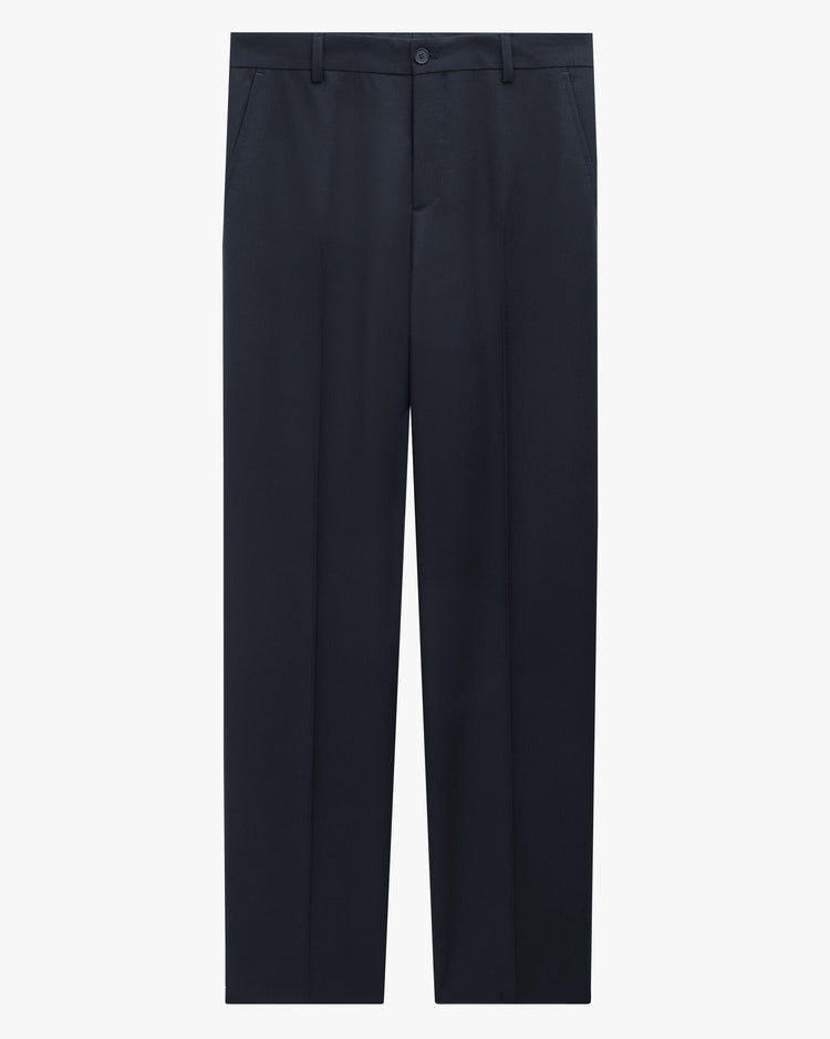 Slim fit trouser, cut from a non-stretch luxurious wool suiting blend. Featuring a tailored waistband with beltloops and full length leg pressed with centre creases.